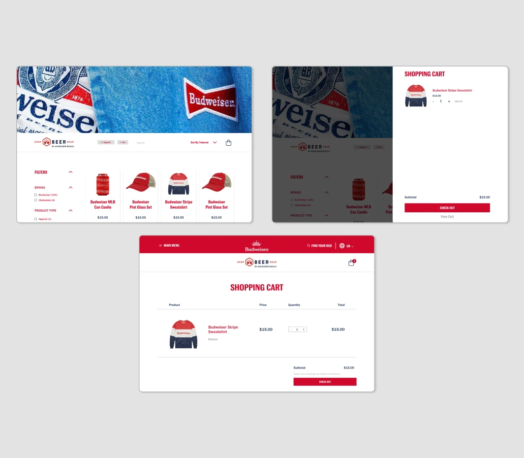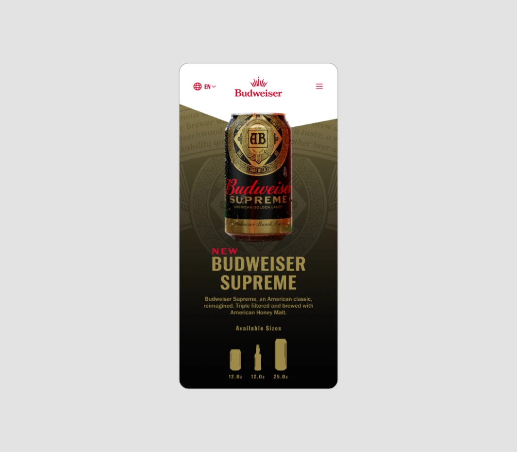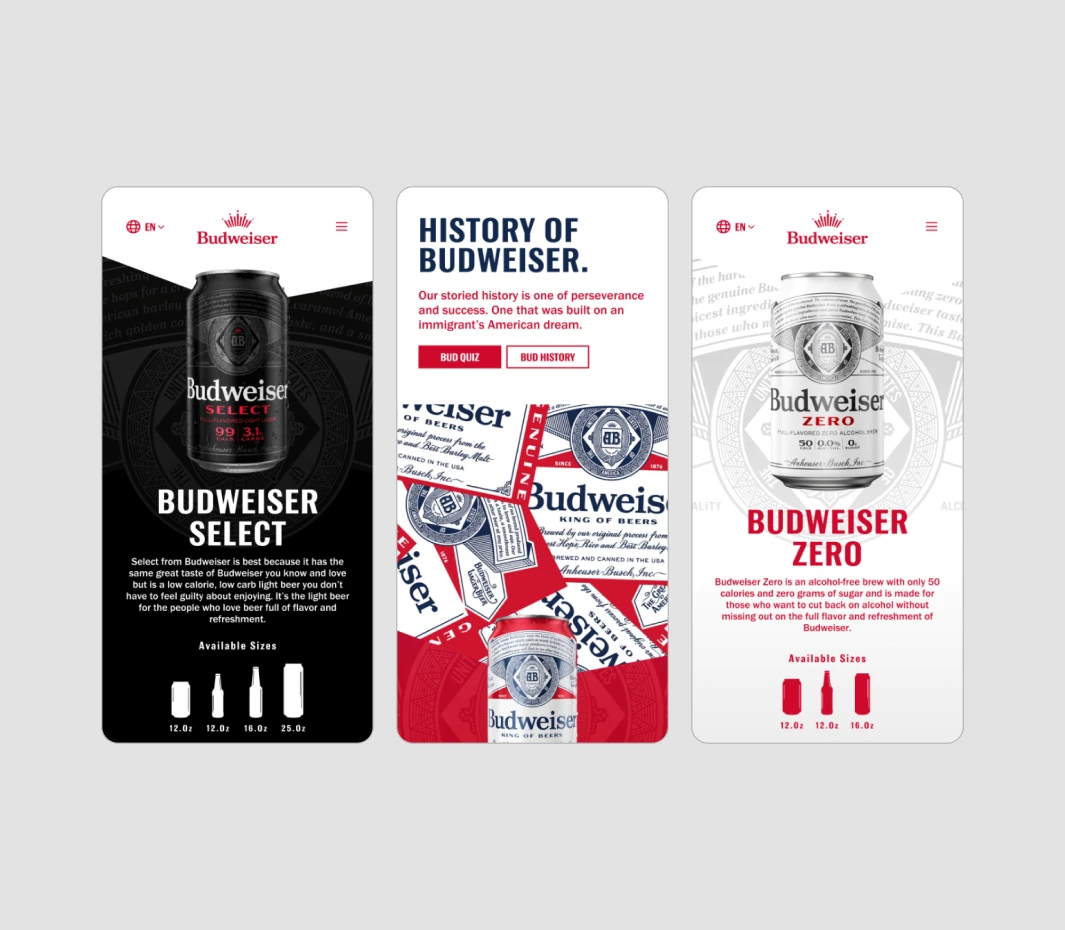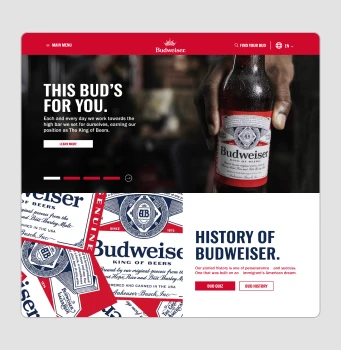 The redesign brought a fresh, dynamic interface that highlights Budweiser’s identity and storytelling. The new experience focuses on easy navigation, product discovery, and immersive brand content. With mobile optimization and intuitive structure, users can now seamlessly explore products, brand history, and ongoing campaigns.
