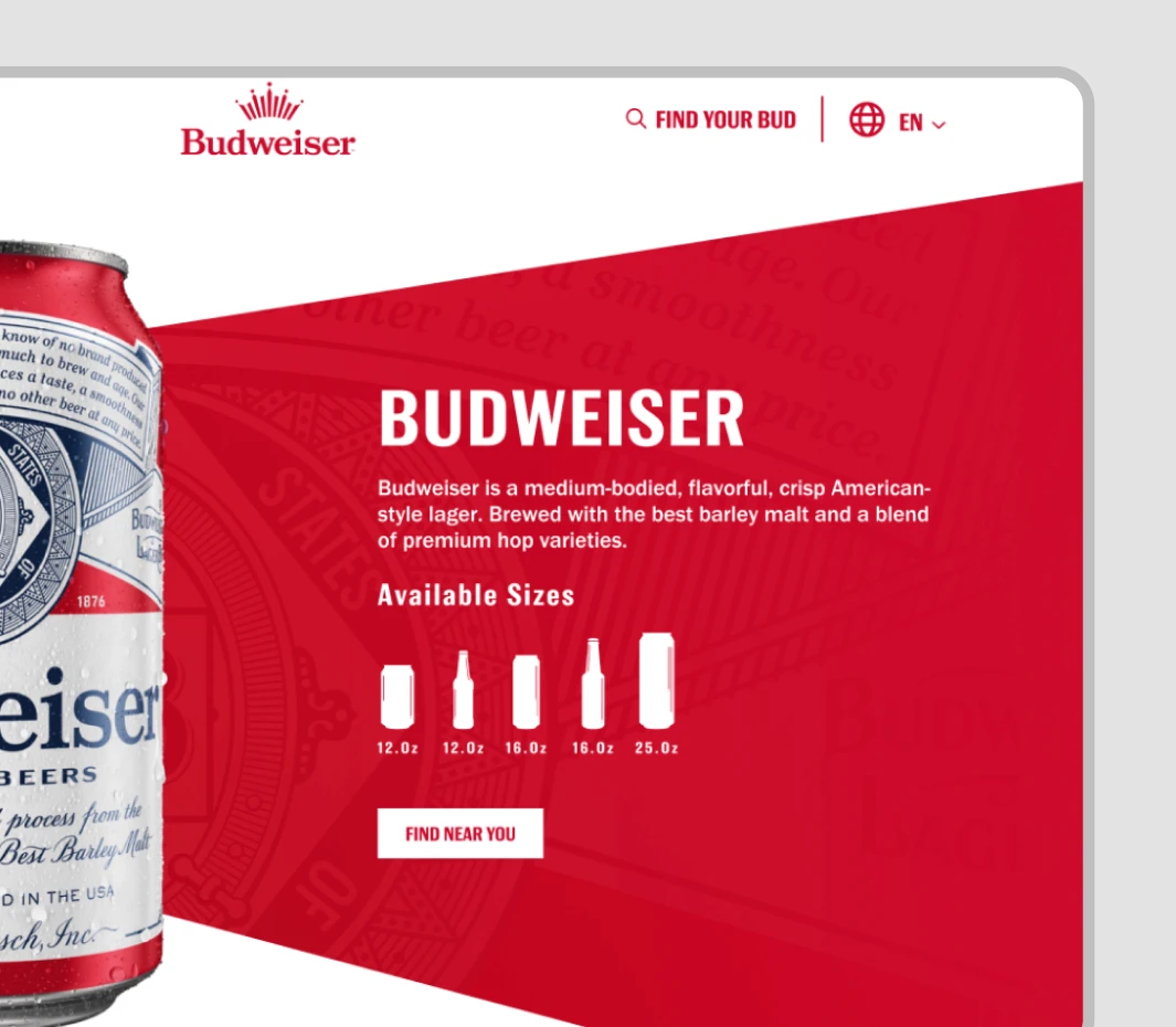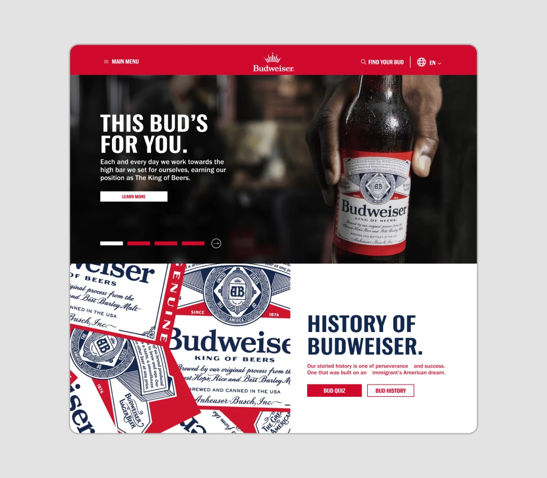 The Budweiser USA website had an outdated look and inconsistent structure, which made it hard for users to explore the brand’s products and campaigns. The browsing experience lacked direction, and users often struggled to find information about the beer lineup or brand heritage.