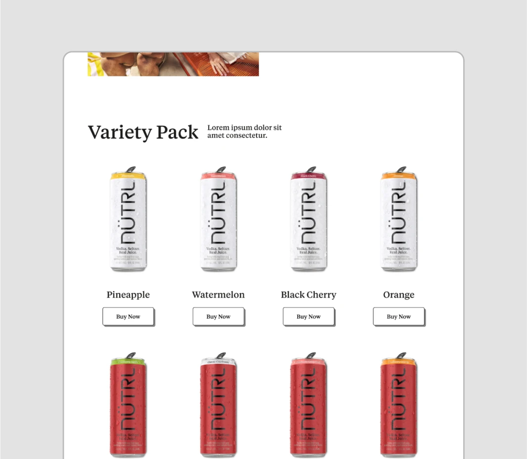 Nutrl’s old website did not reflect the brand’s modern and refreshing character. The layout was visually dated, with confusing navigation that made it hard for users to explore products or brand content. The mobile experience also lacked optimization.