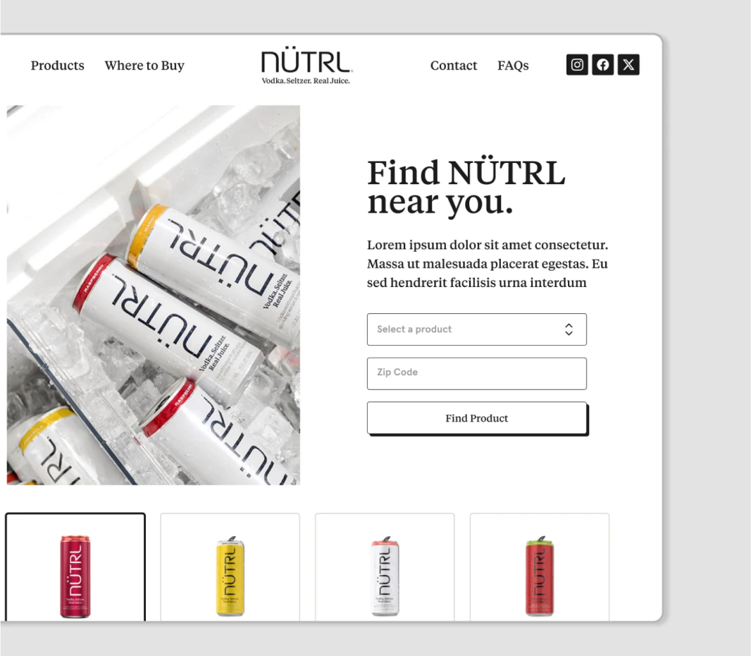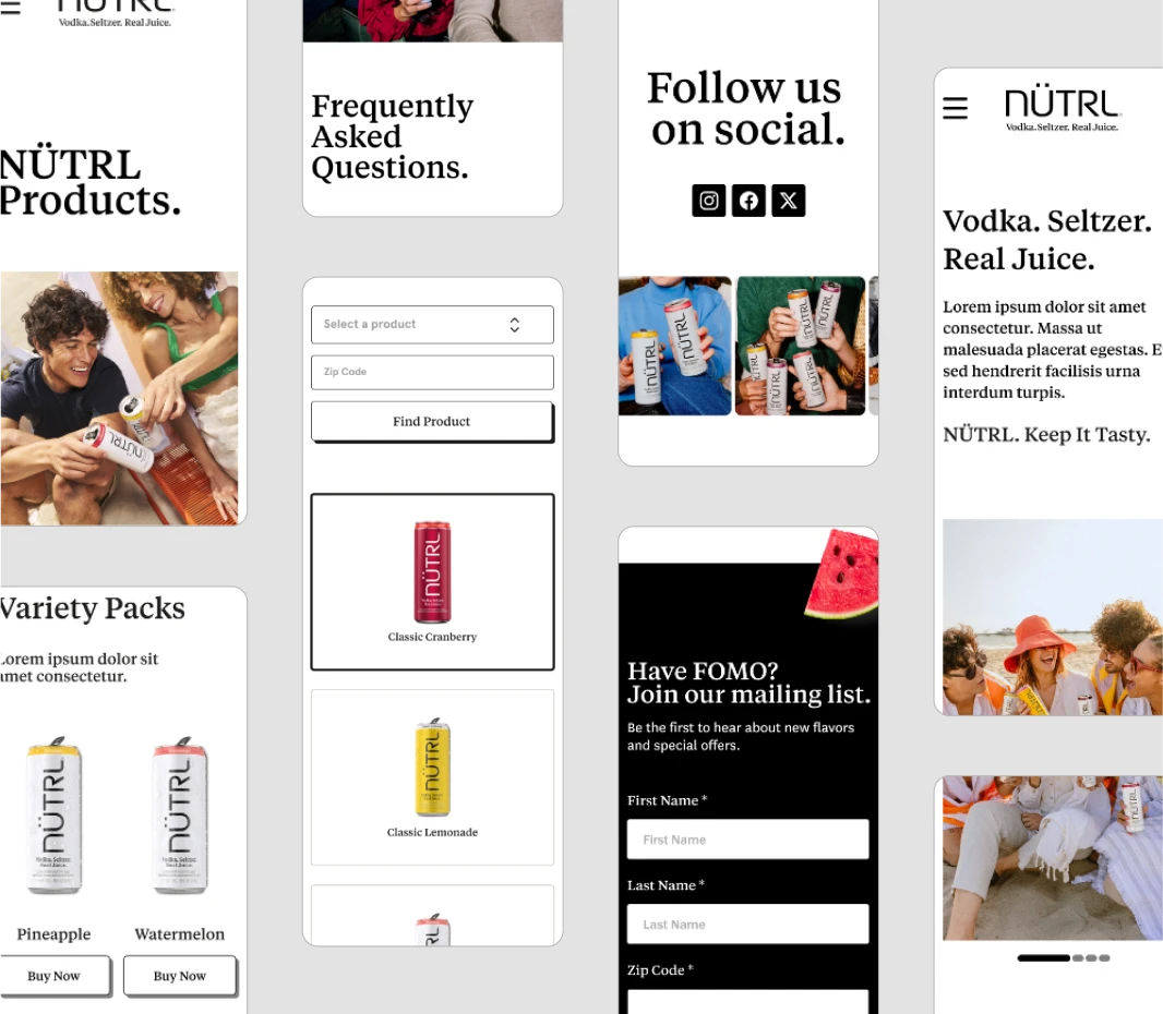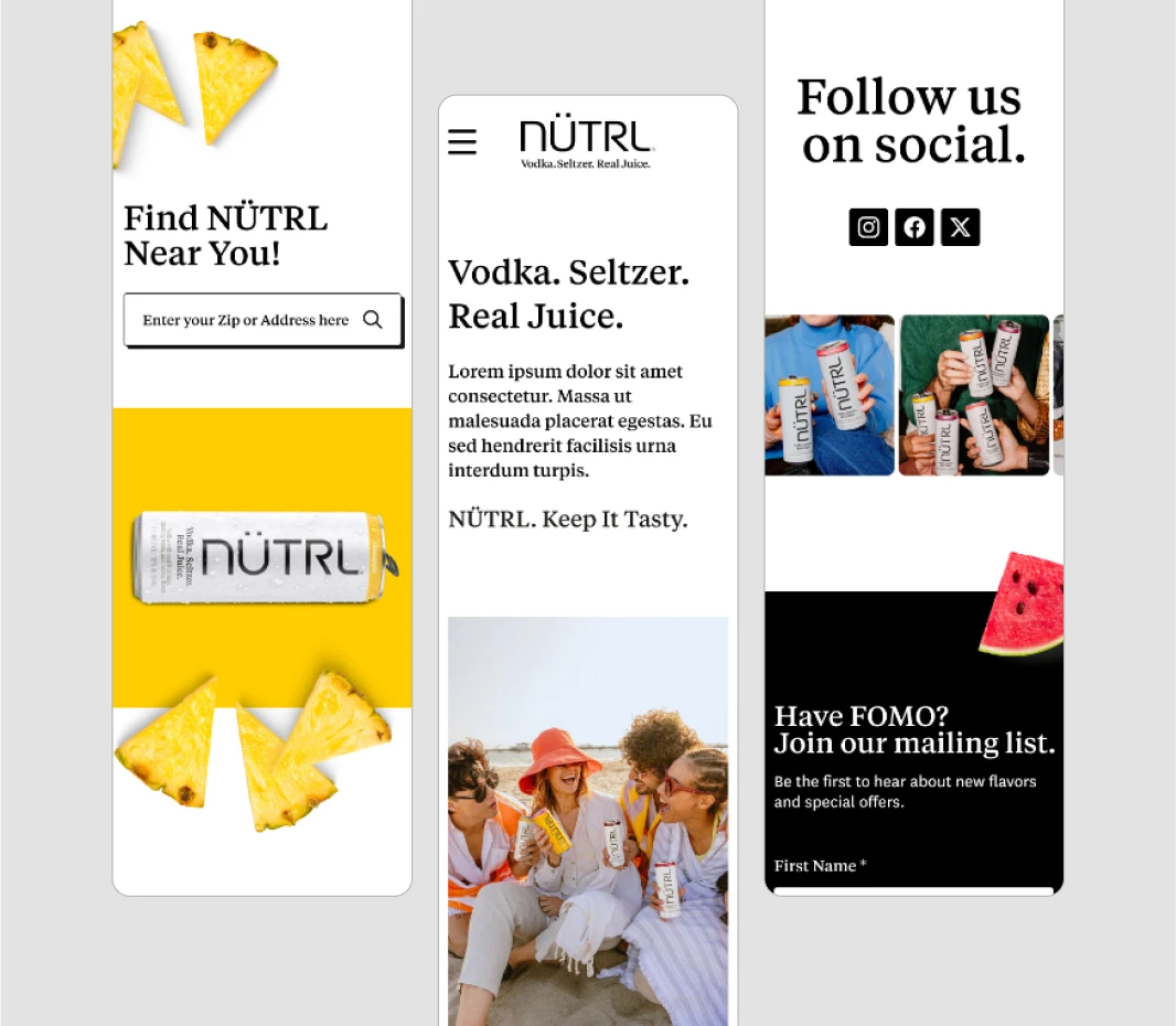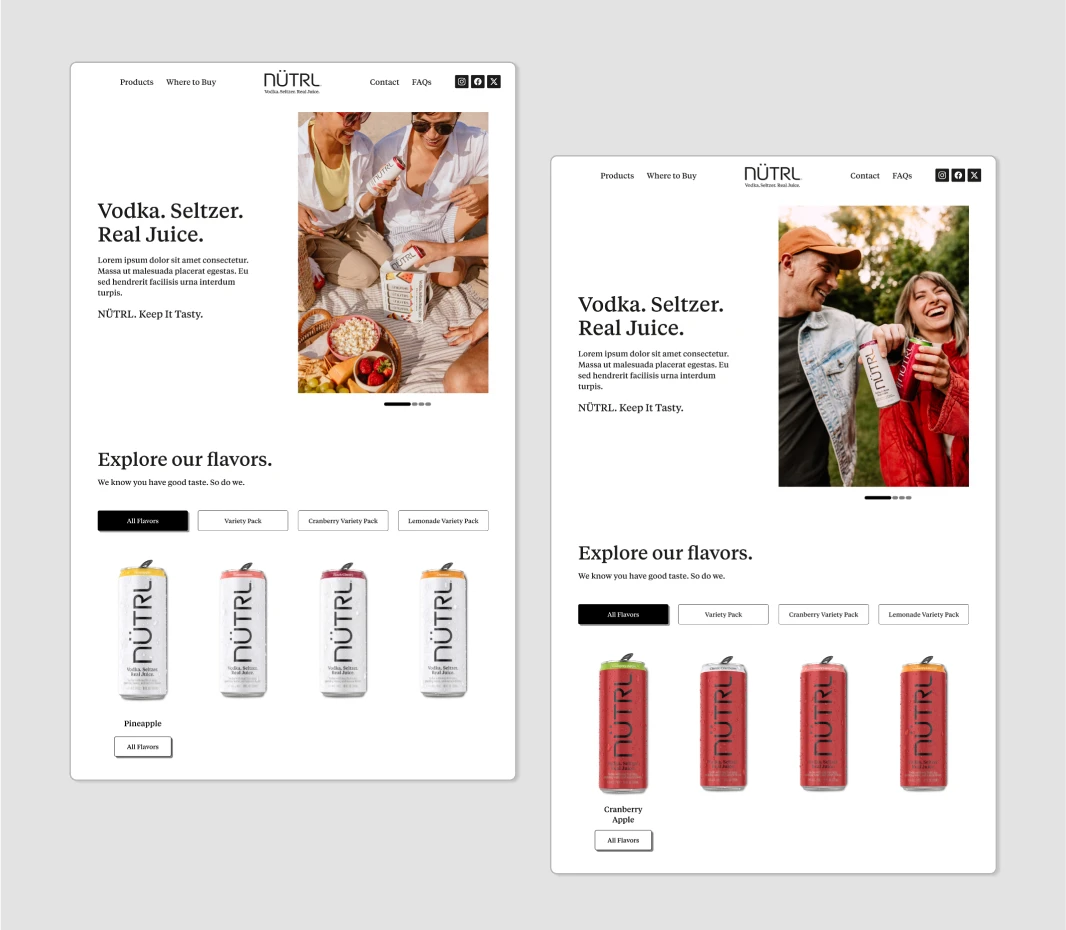 The new design embraces a minimalist, contemporary aesthetic consistent with Nutrl’s clean brand image. I focused on improving navigation, content hierarchy, and mobile usability. The result is an elegant, easy-to-browse website that highlights products, brand story, and campaigns with clarity and impact.