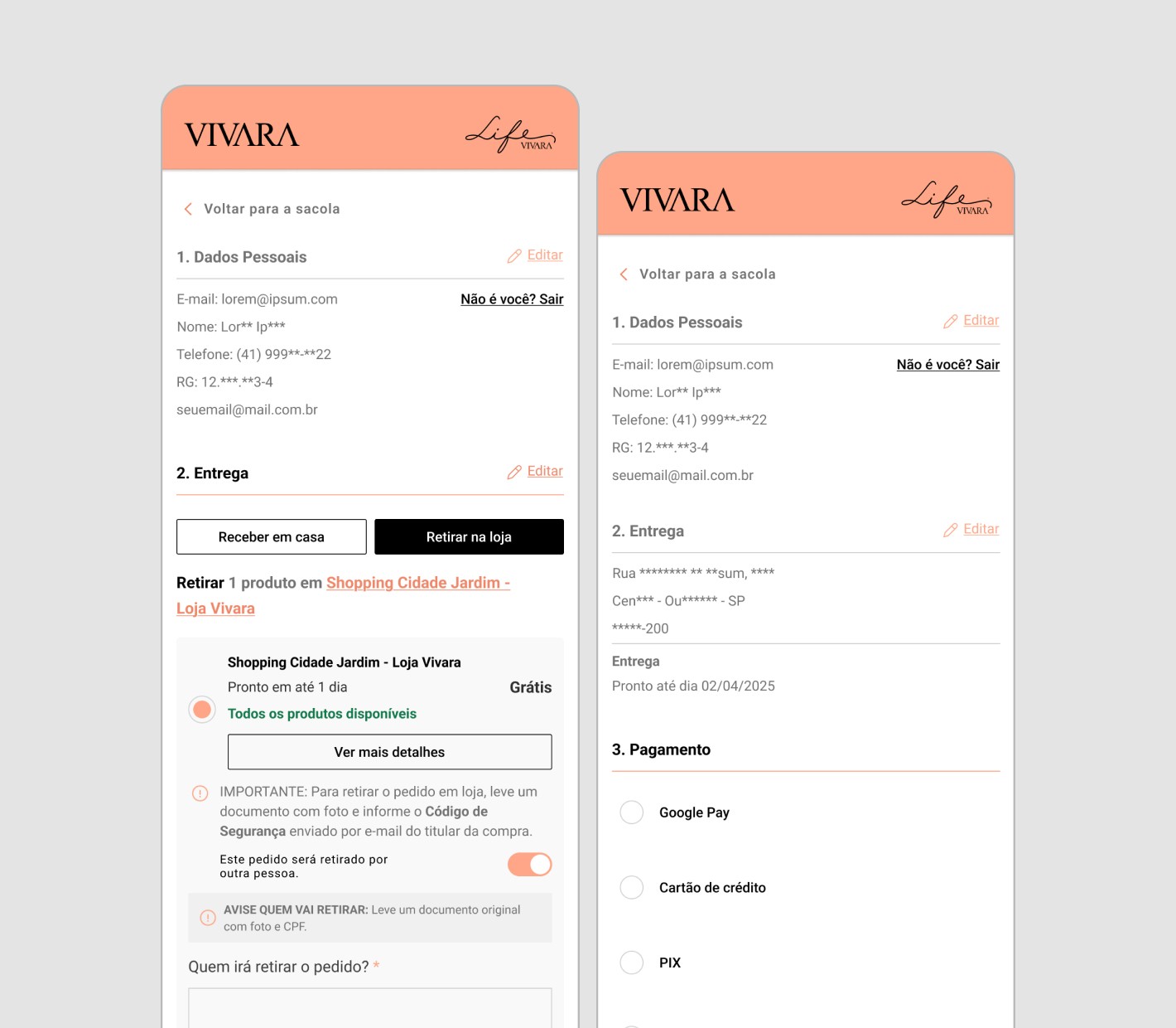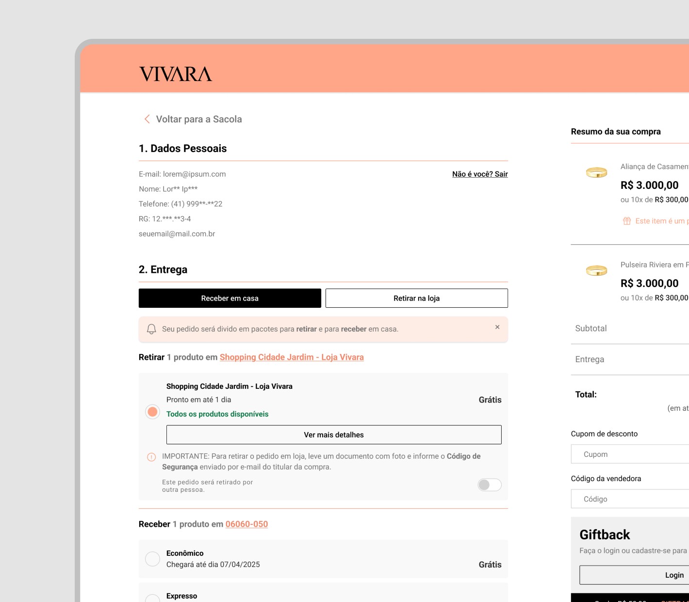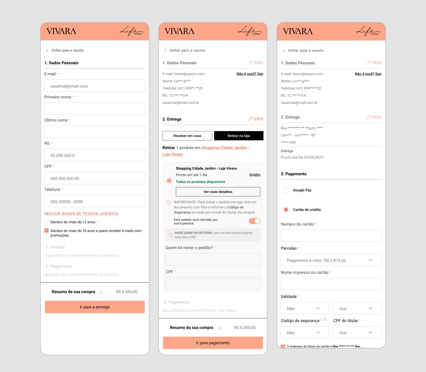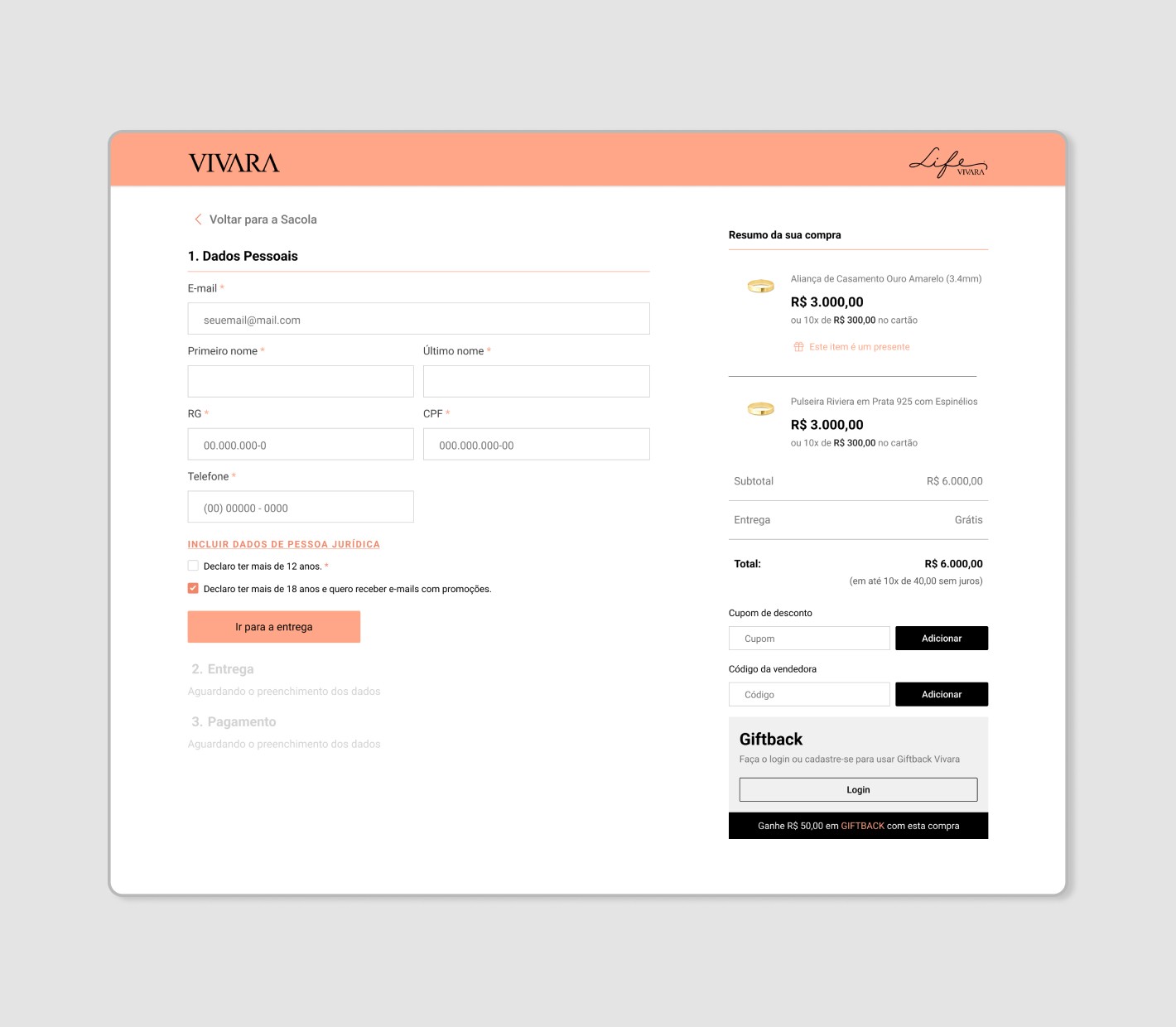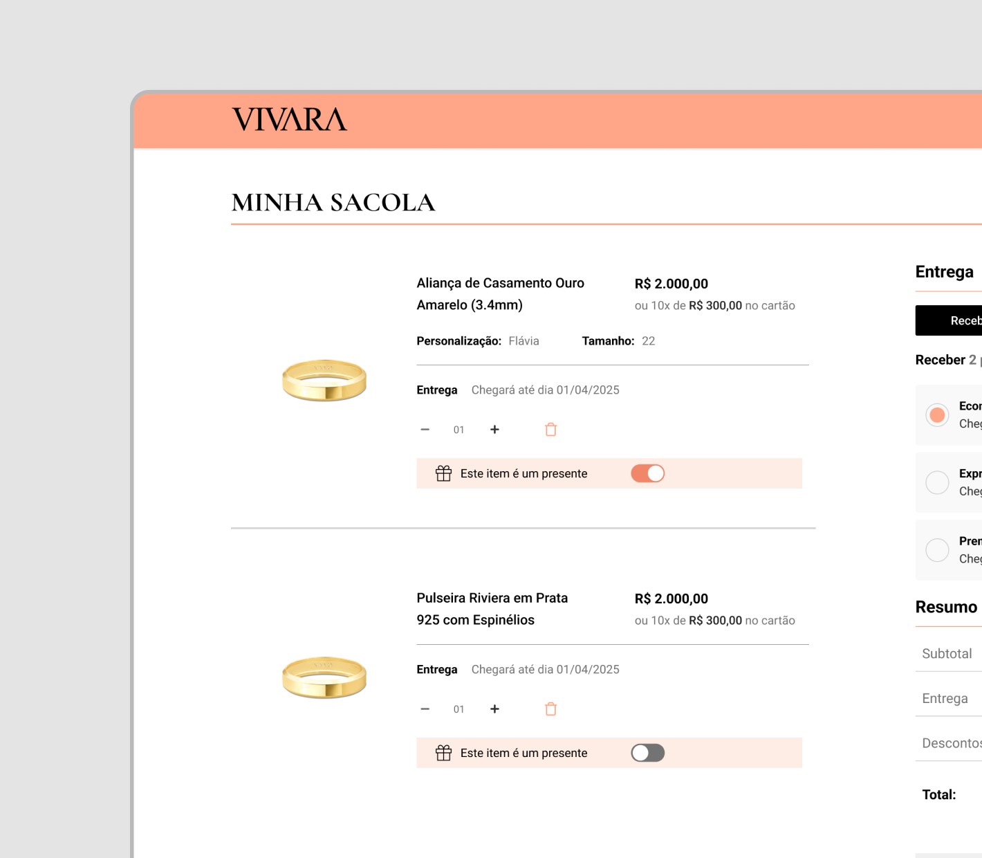 The previous checkout experience on Vivara’s website presented several usability challenges. The typography was difficult to read, the product details were unclear, and the purchase steps lacked visual hierarchy. As a result, users often felt uncertain during checkout, increasing friction and abandonment rates.